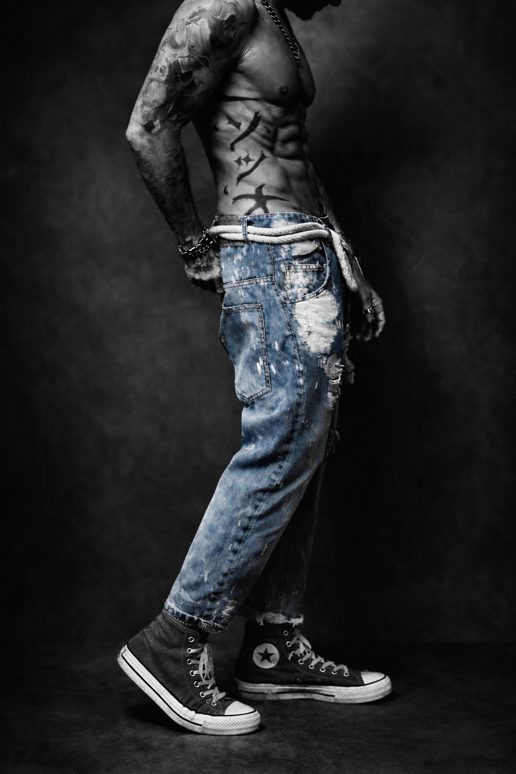 Destroyed jeans.